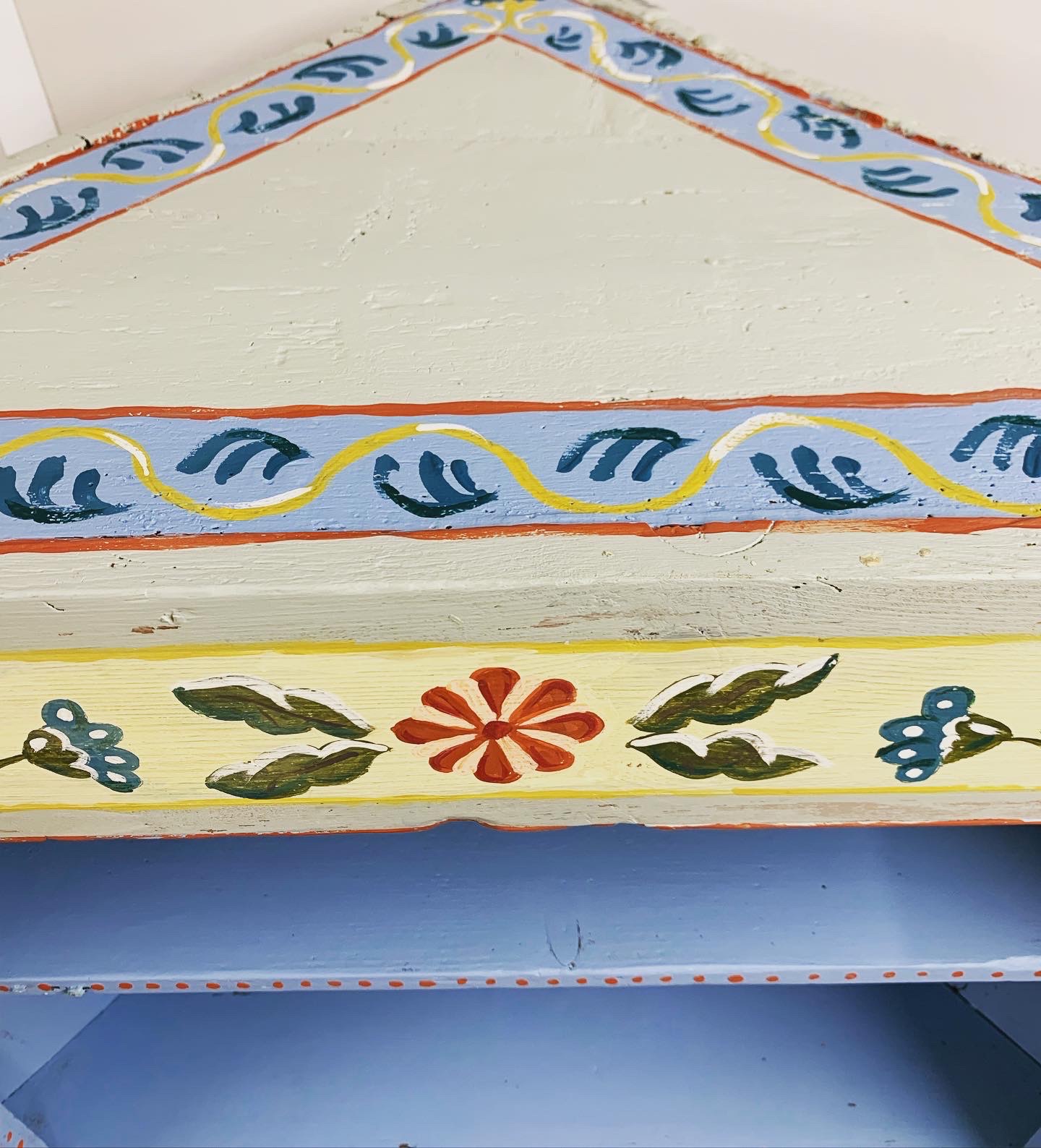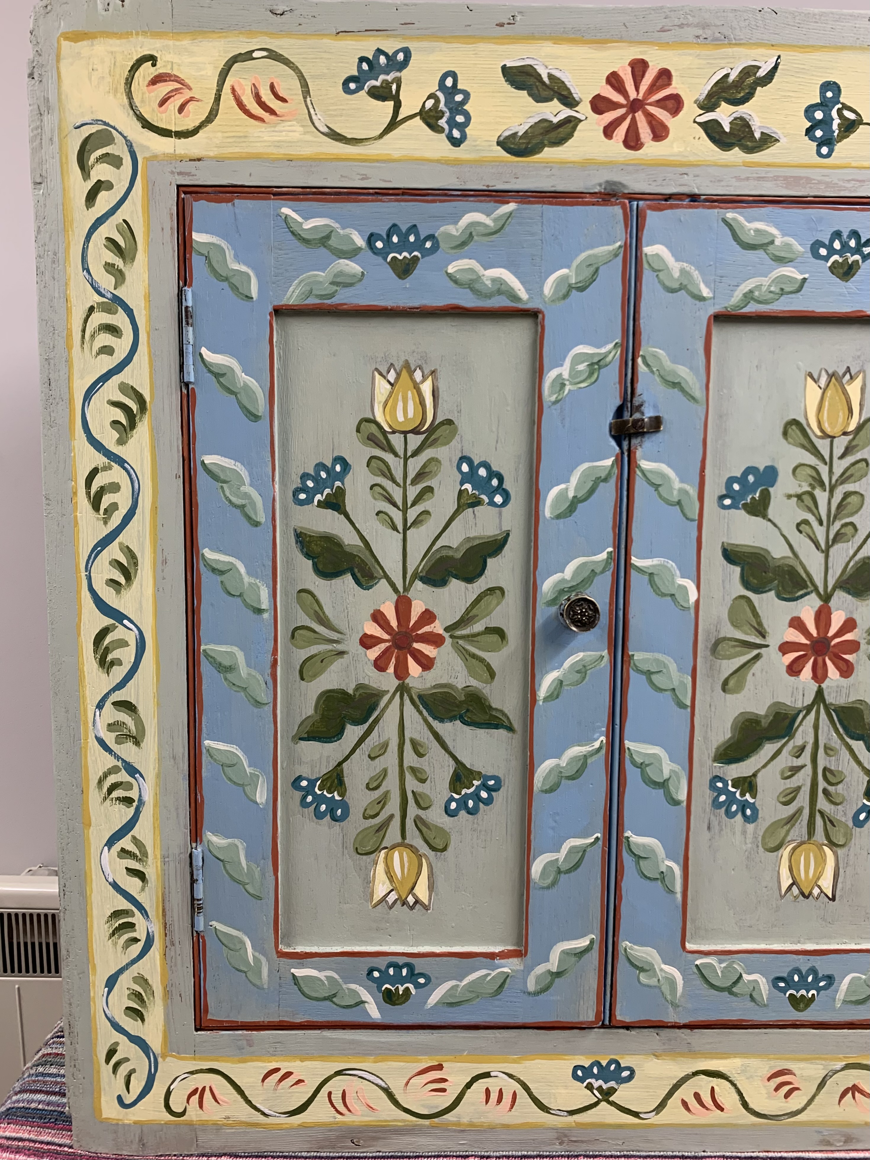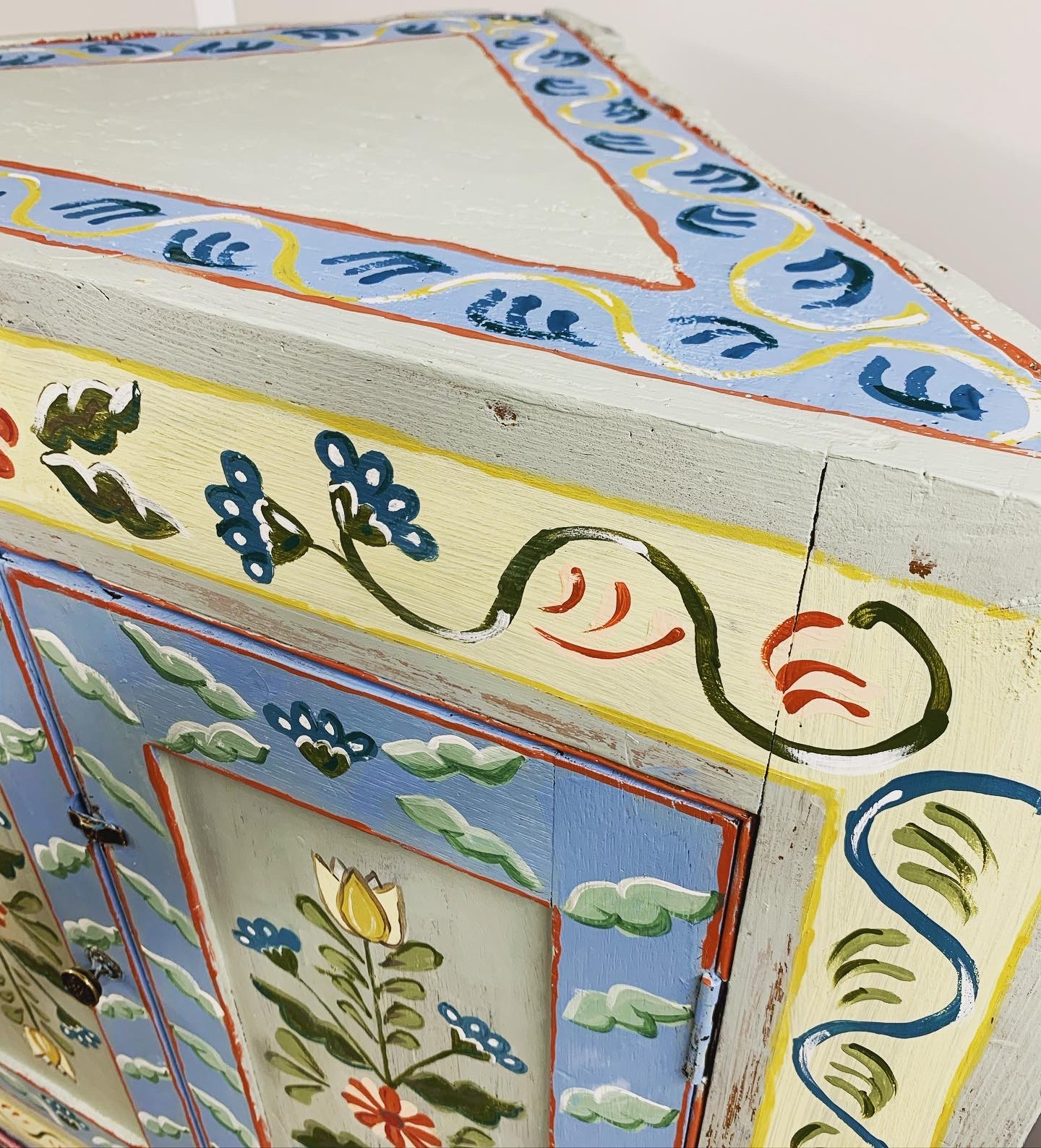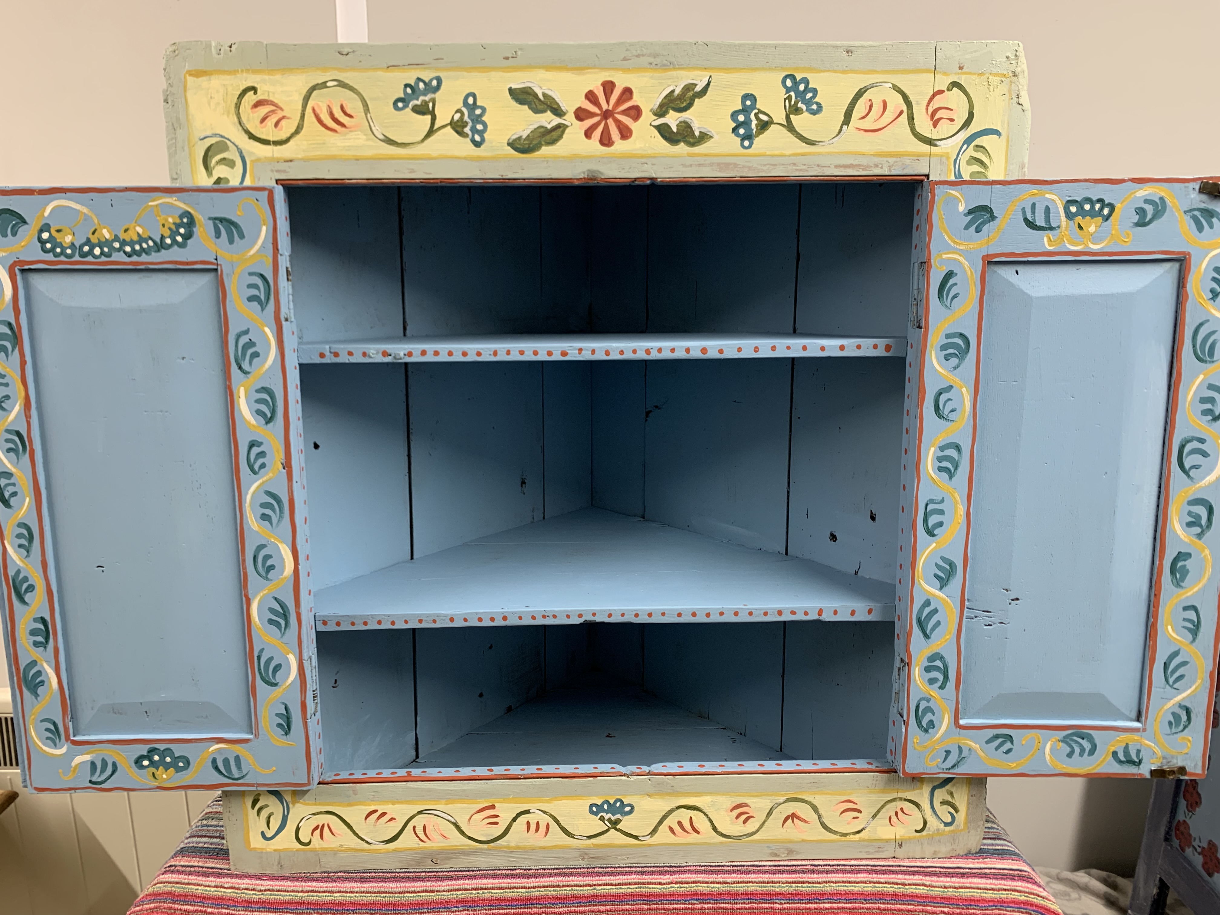 Folk style hand painted corner cabinet